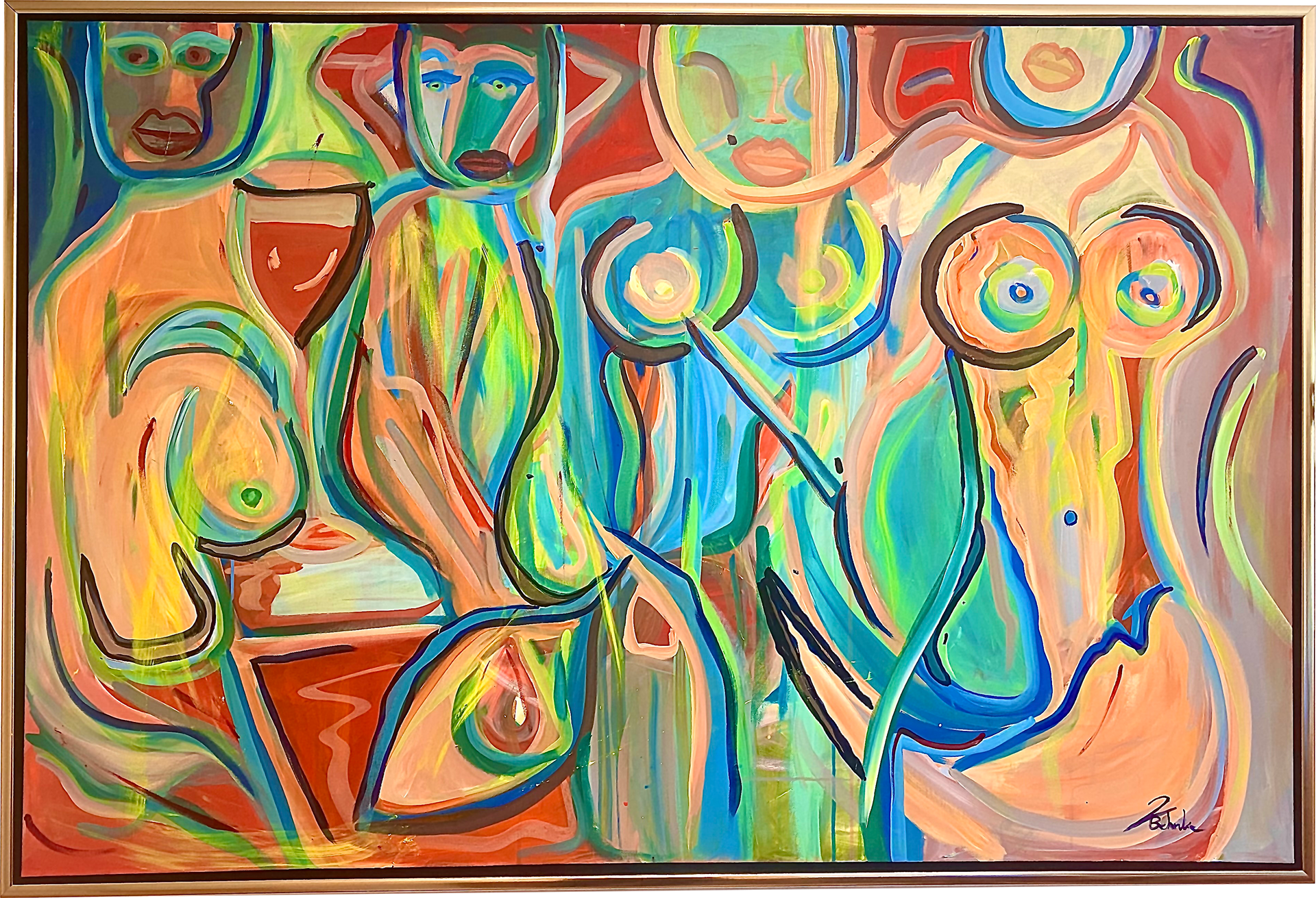 Acrylfarbe auf Leinwand. Das Abendmahl in weiblicher Gestalt abstrahiert.