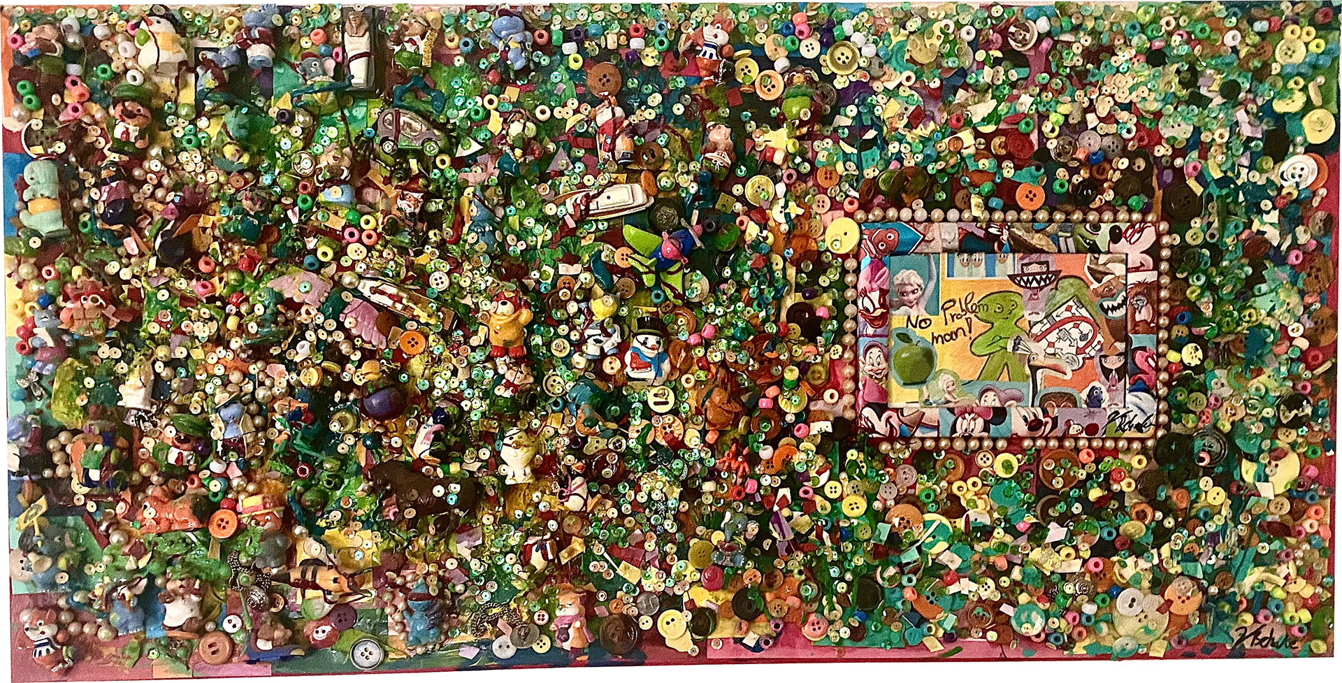 Ü-Eier auf Leinwand. Ein Ü-Ei Potpourri als Komposition aus zusammengesetzten Kindheitserinnerungen bis hin in die Berufswelt.