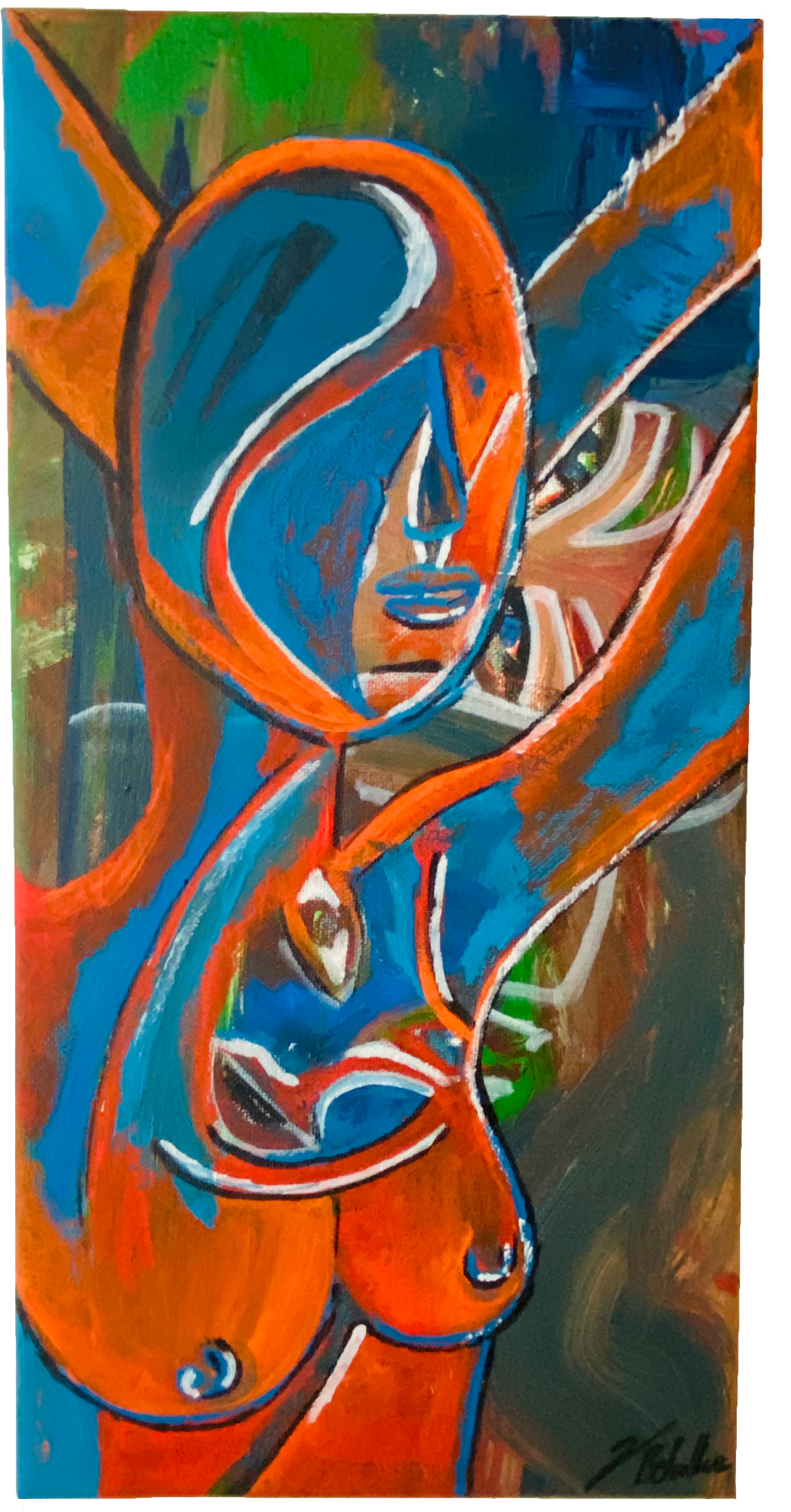 Acrylfarbe auf Leinwand. Die Weiblichkeit mit kontrastreichen Farben verewigt.